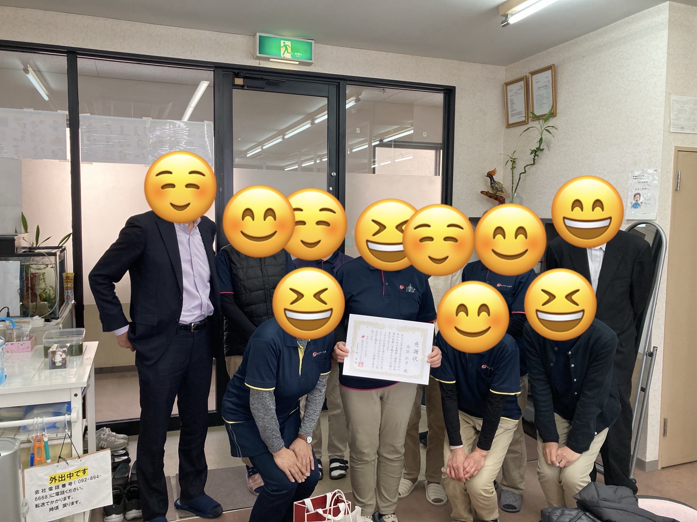Tさん、姪浜第2STに面接に来られ入社されたのが平成19年5月31日、18年9カ月事業所を支えて下さっています。 ヘルパーさん方に一言ずつお言葉をただいたのですが、優しく色々教えて下さり感謝しているとの事言葉が多かったです。まさに職員さん、ヘルパーさん方が利用者様の為に日々ケアを行っていただいています。